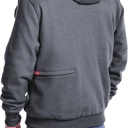 Rugged heated hoodie made from durable cotton (53%) exterior with durable reinforced utility pockets and waffle-weave polyester (47%) lining to withstand tough outdoor conditions In autumn and spring the hoodie can be worn as a rugged outer layer. In winter, it is best as a base layer that allows to shed bulky undergarments while generating and holding heat close to the body