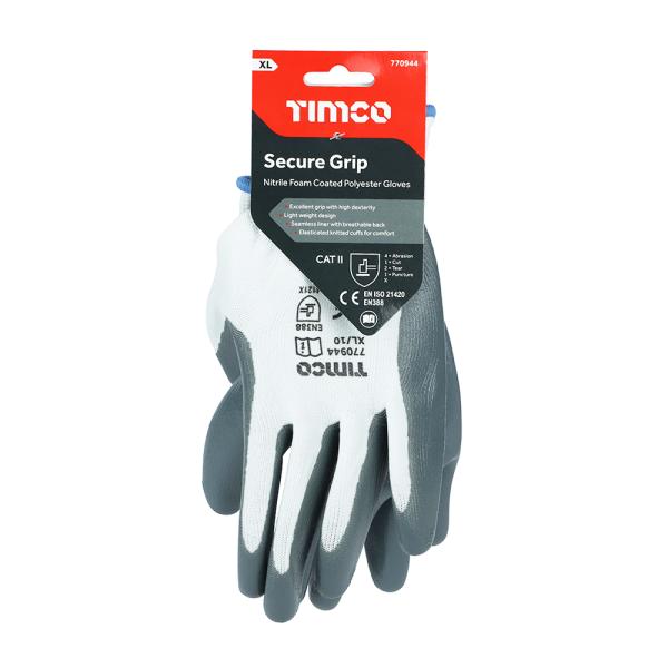 1x TIMCo Secure Grip Gloves Smooth Nitrile Foam Coated Polyester
