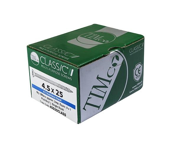 All the features and superior performance of the Classic Multi-Purpose Screw manufactured from A2 Stainless Steel. Ideal where ultimate corrosion resistance is required when fixing to softwoods, hardwood (pre-drilled), chipboard, MDF and plastic. Stainless steel must be used where there is corrosive environment and/or the base material has inherent corrosive characteristics e.g. Green Oak. NOTE: Sharp point only.