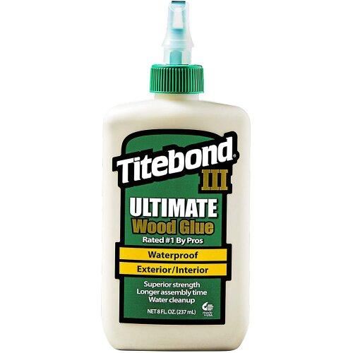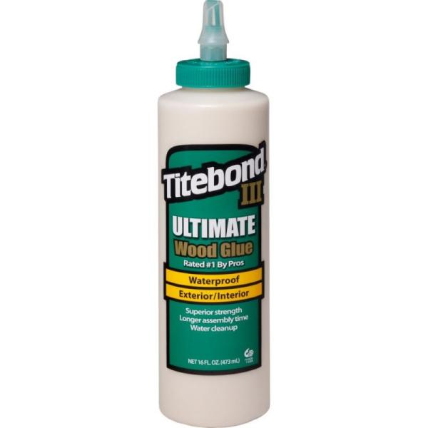 Titebond III Ultimate Wood Glue is the first one-part, water cleanup wood glue ever offered that is proven waterproof. The waterproof formula passes the ANSI/HPVA Type I water-resistance specification and offers superior bond strength, longer open assembly time and lower application temperature.