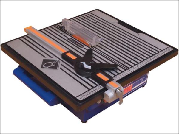 The extra large cast aluminium cutting table is ideal for supporting oversize tiles. It has an integral ruler and quick lock aluminium rip guide for perfect straight cuts, fully adjustable mitre guide with unique ratchet mechanism and the tables tilt for 15° , 30° and 45° mitres.